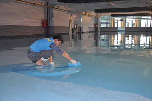 四、一旦地坪有損壞,及時使用涂料修補,以免油污通過損壞處滲透到水泥里,造成大面積涂料脫落。冬季環(huán)氧防靜電自流平地坪施工,環(huán)境溫度低于5℃,可采用冬用型無溶劑環(huán)氧工業(yè)地坪涂料。