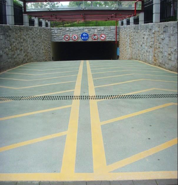 停車場地坪是要求耐磨性強,耐高強度沖擊性,高荷載的汽車行駛區(qū)域,因車在行走時與車道的摩擦力非常大,且車的沖擊力大,因此車道、車位一般采用環(huán)氧樹脂地坪涂裝系統(tǒng)。
