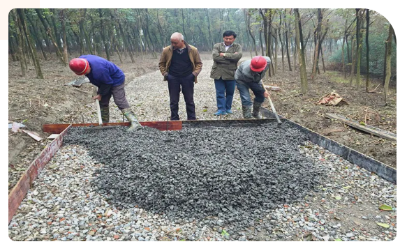 ?為保證鋪裝進度,這兩種情況我們都需將底料進行覆蓋,用原材料補齊壓實,再由重車走過幾次,基本不會再次下陷。