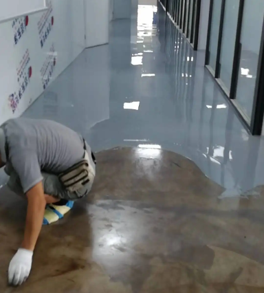 徹底清除地面各種污垢后用專用清洗劑進行清理,使其達到涂裝要求。如果油污浸透到水泥基層較深,清洗后還應通過物理加熱的方法進行處理。素地不平或空鼓區(qū)域需使用環(huán)氧砂漿補平地面。